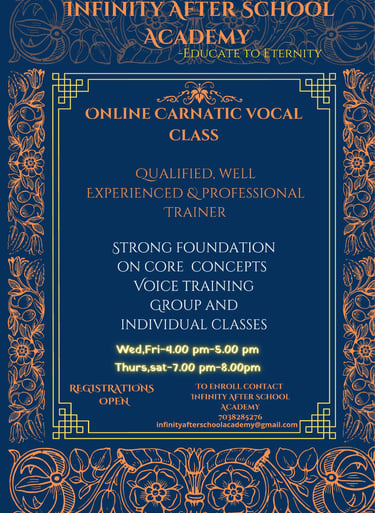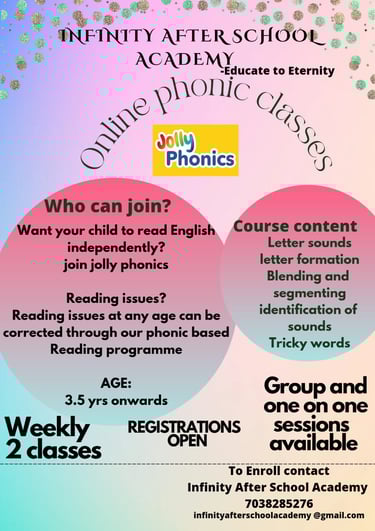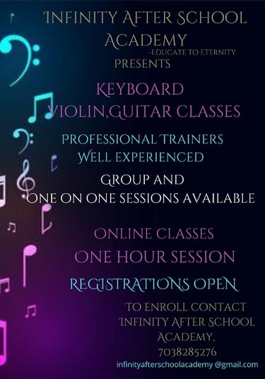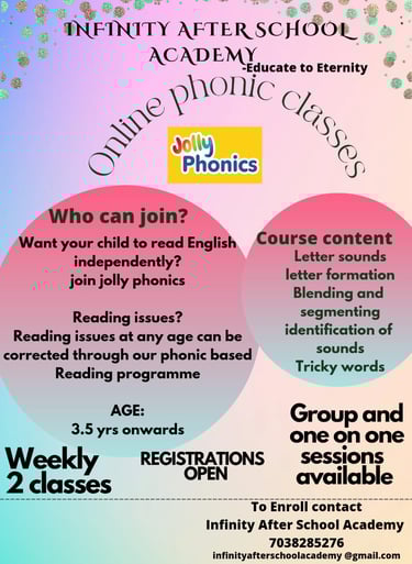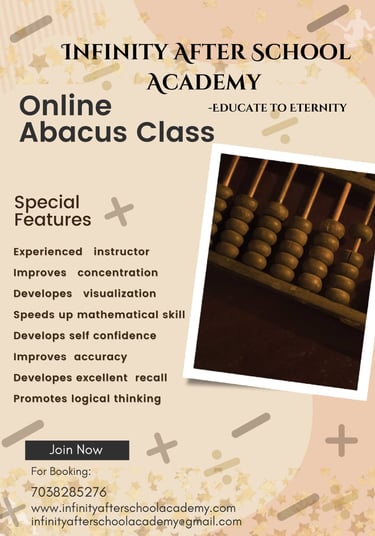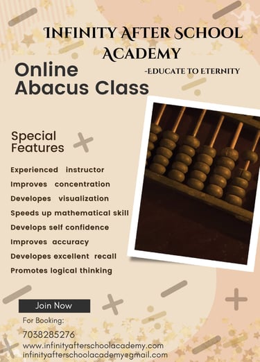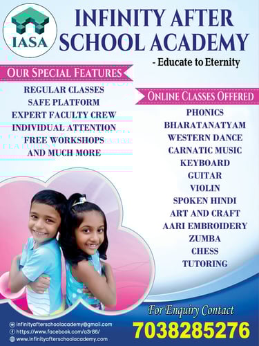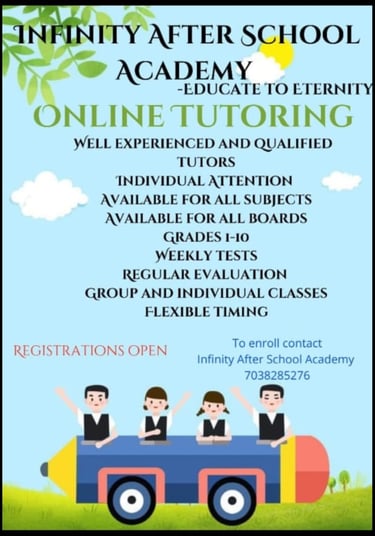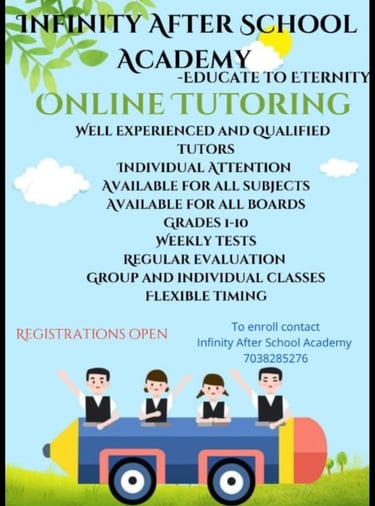 Welcome to Infinity After School Academy! Where learning goes beyond the classroom, and every child discovers their infinite potential. Established in 2021, Infinity After School Academy is your one - stop destination for quality online learning in academics, arts and life skills.